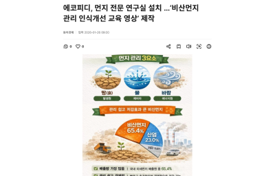 [동아일보] 에코피디, 먼지 전문 연구실 설치 …‘비산먼지 관리 인식개선 교육 영상’ 제작